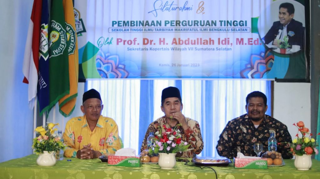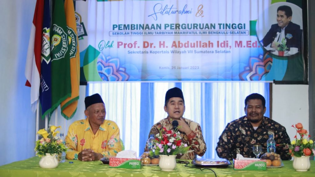 Sekretaris Koordinator Perguruan Tinggi Islam Swasta (Kopertais) Wilayah VII Sumatera Selatan, Prof. Dr. H. Abdullah Idi, M.Ed. melaksanakan pembinaan sekolah tinggi di STIT Makrifatul Ilmi Bengkulu Selatan. (26/01/12)